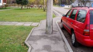 Ja man būtu jāizvēlas mūsdienu Ikšķiles anti-simbols, es paliktu pie ietvju un stabu tēmas. Stabs ietves vidū, iespējams, raksturo gan plānošanas spēju, gan attieksmi pret iedzīvotājiem kopumā. Attēlā redzamais šedvrs radies izveidojot autostāvvietu pie Stūra veikala. Stāvvieta atbraukušajiem pircējiem ir vajadzīga, bet vai tikai un vienīgi sariebjot vietējiem gājējiem?