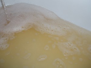 Kā jau cītīgākie lasītāji pamanījuši, es mēdzu fotografēt visu, ko redzu. Dažreiz skaisti, dažreiz interesanti, dažreiz … tikai faktu fiksēšana. Dzeltenais ūdens manā foto arhīvā ir 2008. gada decembrī, 2009. gada decembrī, 2010. gada februārī. Tās visas ir brīvdienas – veļas un vannas dienas! No ilggadīgiem Ikšķiles iedzīvotājiem esmu dzirdējis, ka šis ūdens tiek lietots arī dzeršanai – bez filtrēšanas un vārīšanas. Pats gan tā nedaru, tādēļ par garšas īpašību izmaiņām komentārus sniegt nevaru.